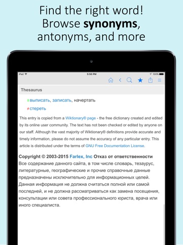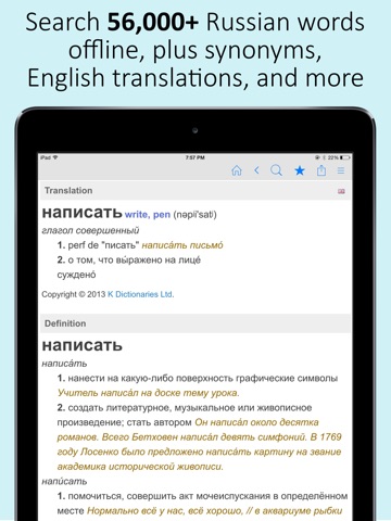 * 56,000+ Russian definitions, all available offline! Bonus content available in online mode.