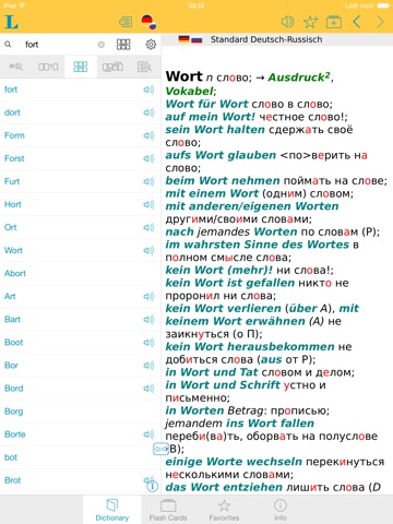 ++ sehr umfangreicher wortschatz, nützliche redewendungen - bisher habe ich alles gefunden, wonach ich gesucht habe, auch slang ++ suche nach ähnlichen worten, wenn man das genaue spelling nicht kennt, funktioniert bestens ++ ich find es toll, wie man auf jedes wort der übersetzung klicken und so zum entsprechenden eintrag in der anderen sprache wechseln kann, und dann schnell und einfach wieder zurück ++ generell sehr einfache, bequeme, intuitive bedienung und schneller sprachrichtung-wechsel ++ vertonte einträge - klasse! ++ suchhistorie wird gespeichert - genial! ++ vokabeln als vokabelkarten speichern, lernen und wiederholen - sehr praktisch = Ich würde mir diese app auch für weitere sprachen holen!