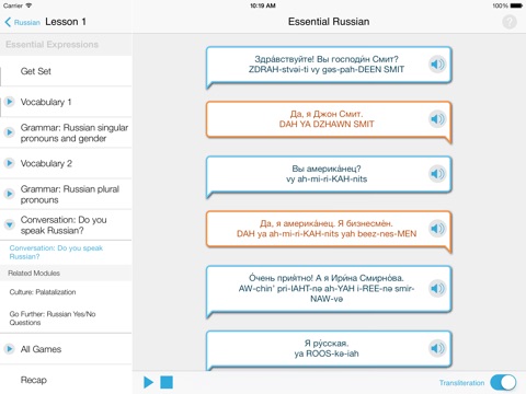 Start learning Russian right away with FREE lessons. The experts at Living Language take you beyond the basic phrasebook. We offer a complete course that will teach you how to speak Russian right from the start using essential words and phrases. Weve taught millions how to speak new languages over the past 65 years, and now weve made our proven method available in an app thats fun, engaging, and easy to use.