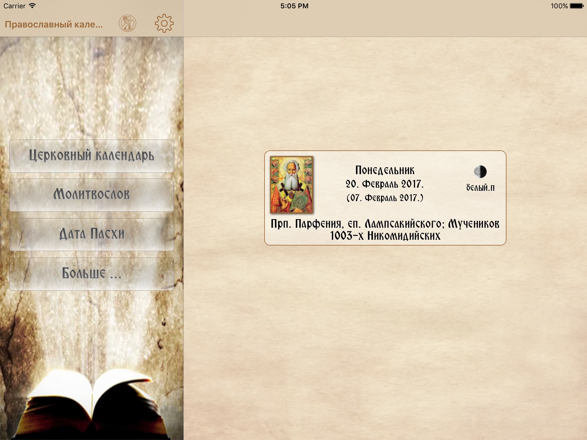 - The church calendar, for the period between 2012. and 2030., with daily date review according to Gregorian and Julian calendar, the moon phases and fast types. The church calendar automatically adjusts moveable holidays and fasts for every year according to Easter as well as the moon phases.