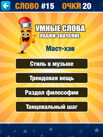 В процессе игры вы будете запоминать правильные ответы, что положительно скажется на вашей общей грамотности и эрудиции. Чем дольше вы играете, тем лучше результат!