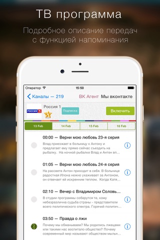 • Программа передач с описанием