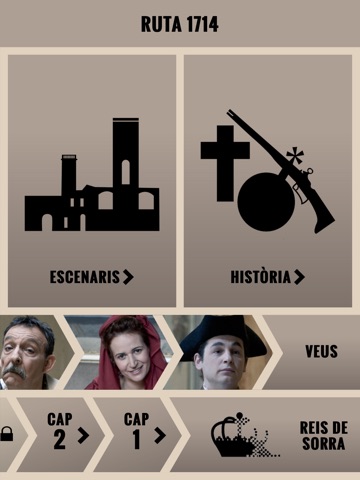 L’app Ruta 1714 són tres apps en una de sola: una completa guia cultural, turística i gastronòmica dels principals enclaus de la Guerra de Successió a Catalunya; una eina de divulgació històrica amb informació rigorosa sobre els fets de la Guerra i amb una col·lecció de vídeos premium, i, finalment, una novel·la poc convencional que s’anirà publicant per capítols setmanals: Reis de sorra. La història convida a descobrir secrets del segle XVIII que podrien haver canviat el futur dEuropa. Seguint-la, podràs acompanyar la protagonista, Bruna Arderiu, en el seu periple per recuperar un llegat perdut i unes cartes comprometedores.