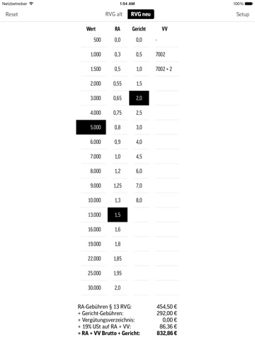Das was jeder Zivilrechtsanwalt braucht. Eine echte Arbeitserleichterung. Schön wäre es, wenn noch die Umsatzsteuer ausgeworfen würde, vielleicht unter die RA-Gebühr mit dem Text "hieraus 19%:" und dann Betrag und Summe.
