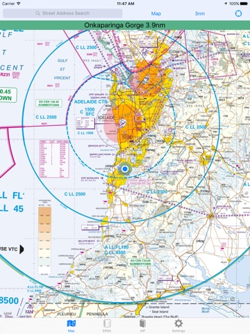 - 3.0 NM circle around user position + street address results