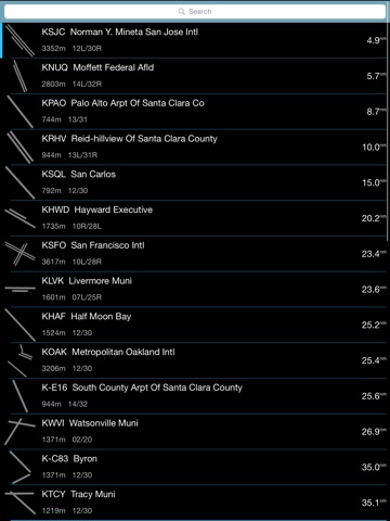 RWY Go contains an updatable database of worldwide runways, navigation aids and frequencies from official sources. Everything from dirt strips to large international airports are covered and you can filter results by runway length.