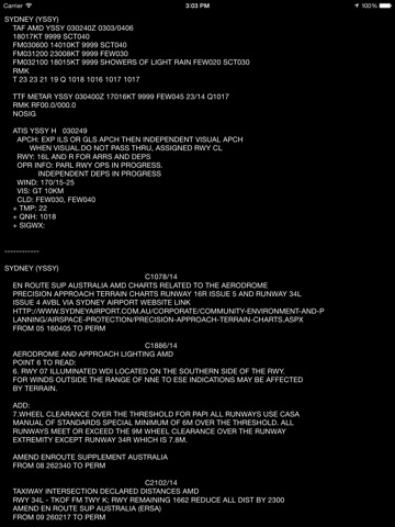 METAR, TAF and NOTAMs are loaded for applicable airports and you will see these by swiping right. If there is a wind direction given in the METAR or TAF/TTF, you will see a windsock on the runway diagram.