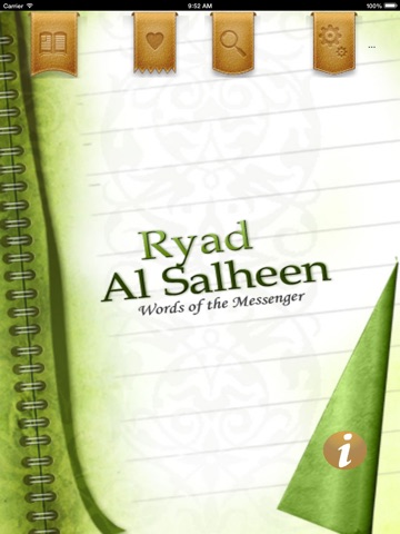 كتاب رياض الصالحين من كلام سيد المرسلين مؤلفه الإمام يحيى بن شرف النووي الدمشقي، صاحب أشهر ثلاثة كتب لا يكاد بيت مسلم يخلو منها، وهي: الأربعون النووية، والأذكار، ورياض الصالحين. يضم الكتاب 1896 حديث مُقسمة على 372 فصلاً. تشتمل على أقوال وأفعال النبي صلى الله عليه وسلم، كما يرويها الصحابة، وقد أجمع أصحاب كتب التراجم أن الإمام النووي كان رأسًا في الزهد، وقدوة في الورع. وهذا البرنامج هو عرض مُنظم لكتاب الإمام النووي باللغتين العربية والإنجليزية يمُكنك من الإبحار بين الكتب والفصول، مع محرك بحث قوي يمُكنك من البحث في جميع الأحاديث بالعربية والإنجليزية. ويهدف البرنامج لنشر السنة النبوية المشرفة، فيمنحك إمكانية إرسال الأحاديث ونشرها عن طريق الفيسبوك، أو البريد الإلكتروني أو رسالة نصية.
