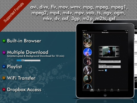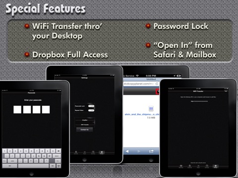 * Wifi Transfer (Transfer your videos from your desktop via WiFi)