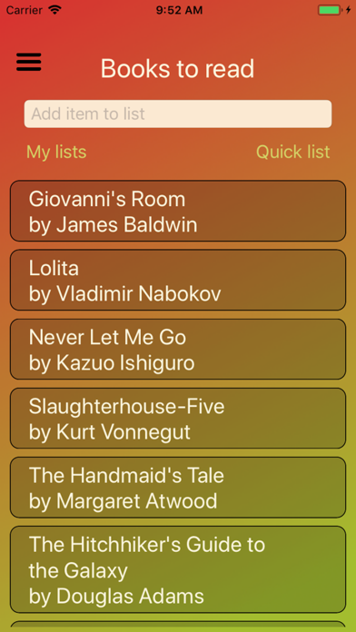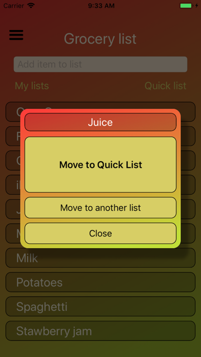 You can create as many lists as you need and each list has its own quick list attached. The lists can be edited, named and deleted as you wish. List objects can also be moved between your different lists.