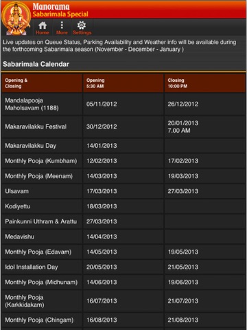 Get access to everything you want to know about Sannidhanam. Follow updated information on queue status, parking availability, weather information, pooja timings and more... plus continuous coverage from Sabarimala... all in a single app