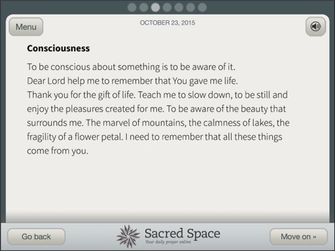 Sacred Space is a work of the Irish Province of the Society of Jesus (the Jesuits). The website launched in 1999 and has been providing daily prayer ever since. Sacred Space is now translated into over 15 languages and continues to provide new ways to pray.