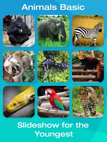 Simplicity is the key to a successful app for children. Touch the animal to see its magnified image and hear its voice, name and written form. Touch the arrow or swipe your finger to get to next or previous page with more animals. Run simple slideshow for the youngest where no children cooperation is needed.