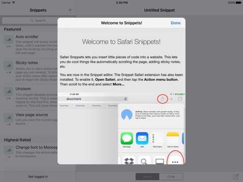 Safari Snippets allows you to insert little pieces of code into websites, to do things like control zooming, changing fonts, adding sticky notes etc. You can create your own snippets, or browse from the database of user-published snippets.