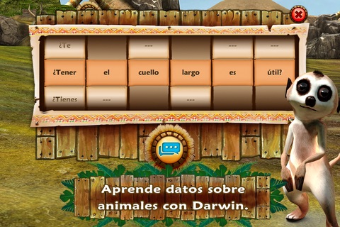 • Usa el generador de preguntas para hacerle preguntas a Darwin, el suricato parlante, sobre todo lo que quieras saber acerca de animales.