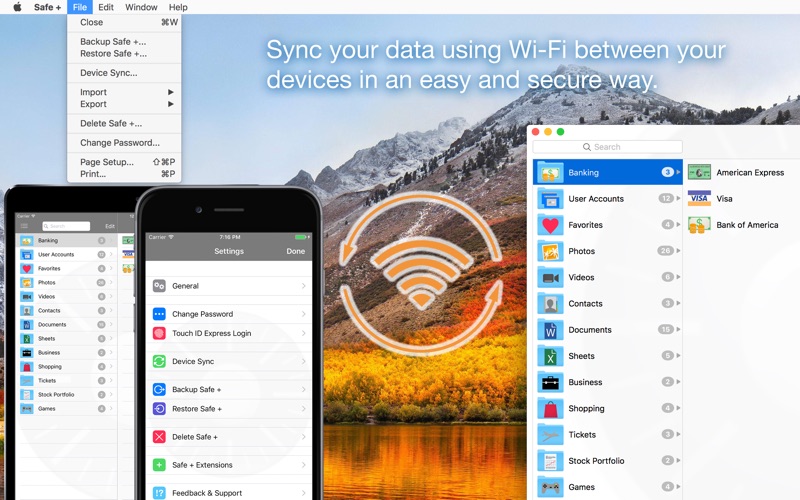 Safe + is compatible with the Safe + version for iPhone, iPad and iPod touch that is available separately on the App Store!