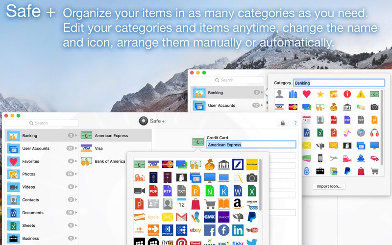 Safe + helps you manage and organize your passwords, and provides a mobile and secure place to keep them – at home, at work and on the move.