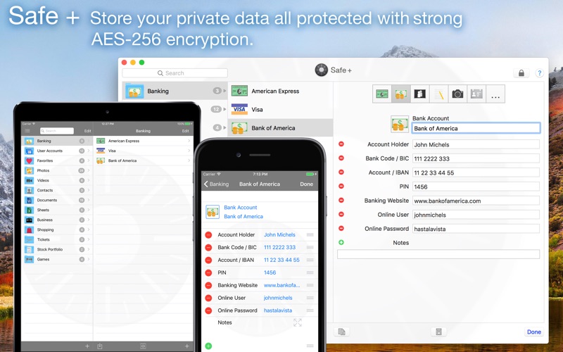 Your data is always protected - even if your Mac is lost or stolen and the complexity of the algorithm used in Safe + ensures top-level protection against any attack.