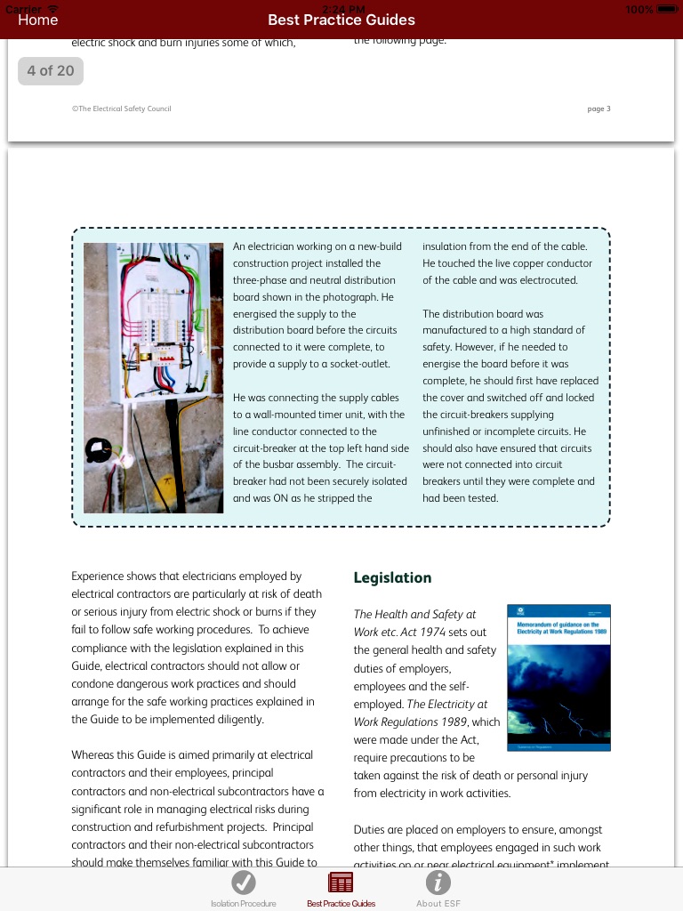 The Safe Isolation app is a step by step guide using a series of illustrations and simple instructions to enable anyone carrying out work on or near electrical equipment to do so safely.