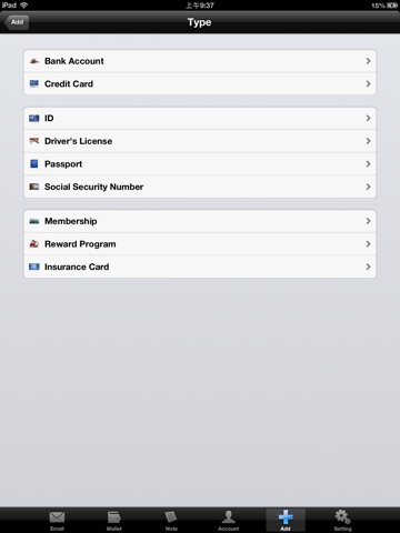 * Save important information such like credit card, bank account, passport, drivers license and etc.