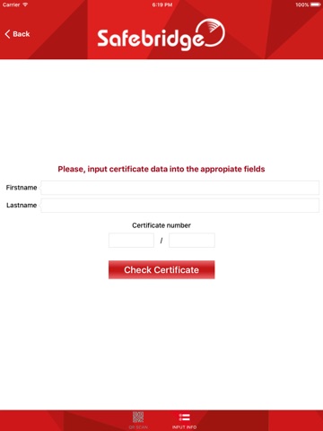 - Two ways of checking the status of your certificates are allowed on Safebridge´s platform: Scan the QR Code on your certificate or fill in the form field with the required information.