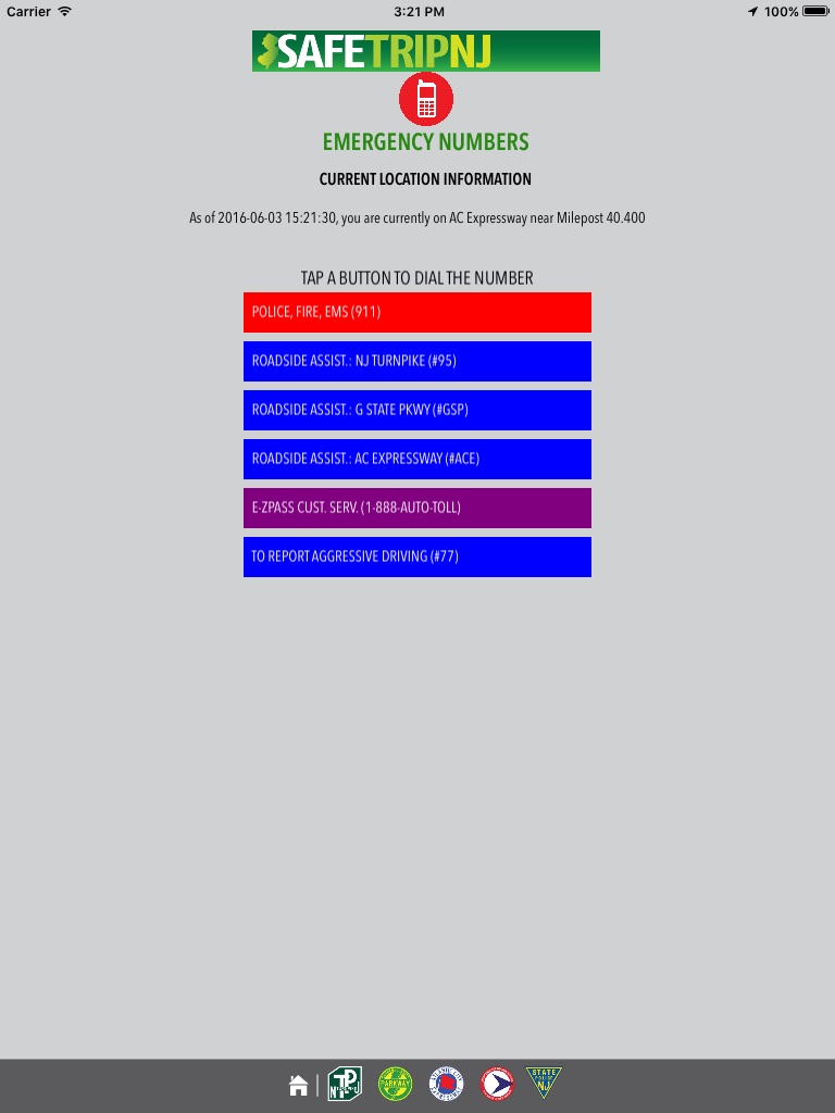 IMPORTANT – This application is intended to be launched while the user is not operating a motor vehicle. Users should not use their mobile device while driving. The New Jersey Turnpike Authority is not responsible for any personal injury, property damage, legal sanction, traffic violation, or any circumstances surrounding the use and/or misuse of this application or mobile device.