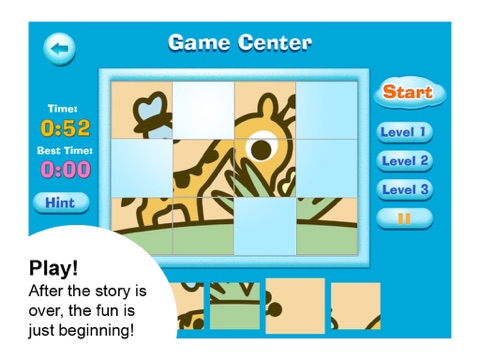 •“Game” is a simple puzzle game where children can piece together a page from the story.