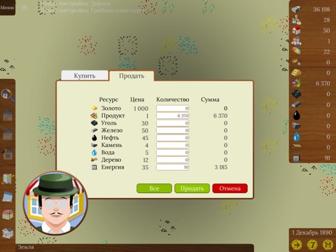 · Ресурсы можно покупать и продавать на рынке (цены различаются).