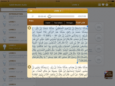 - 54 chapitres sous format Audio : Une centaine dheures de hadiths Audio