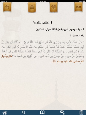 This application is an organized reader and search engine in both Arabic and English divided to categories and chapters, to enable you find right ahadith about all your life topics. It enables you also spread our Prophets ahadith by Facebook, Twitter, email, or SMS.