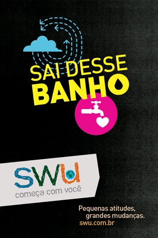 Aceite o desafio de ajudar o planeta. Com o Sai Desse Banho você ainda descobre quantos litros de água consegue economizar por banho, podendo acompanhar o bem que está fazendo. Se ficar com vontade de fazer ainda mais, é só acessar www.swu.com.br.