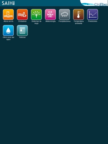 It provides data from discharge stations (levels and river flows in the basin), reservoirs (levels, volumes and water filled percentage), irrigation systems (levels and flows in the irrigation channels), Weather Stations (pressure, temperature, wind speed and direction, solar radiation,...), rainfall (rainfall intensity and accumulated rainfall data in different times), air temperature, hydrological forecasts (flow discharge forecasts for the rivers of the basin), other water uses and interesting news.