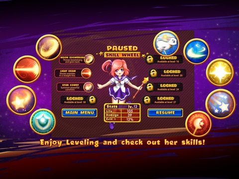 The game is as easy as dragging Miru in to move around to avoid shadow beings and their attacks. Miru will automatically attack using her magical moon stick wand to shoot away that light. As you level up you get to gain new spells to help you even more!