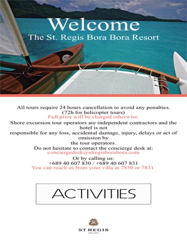 This application lists the different activities offered by the hotel