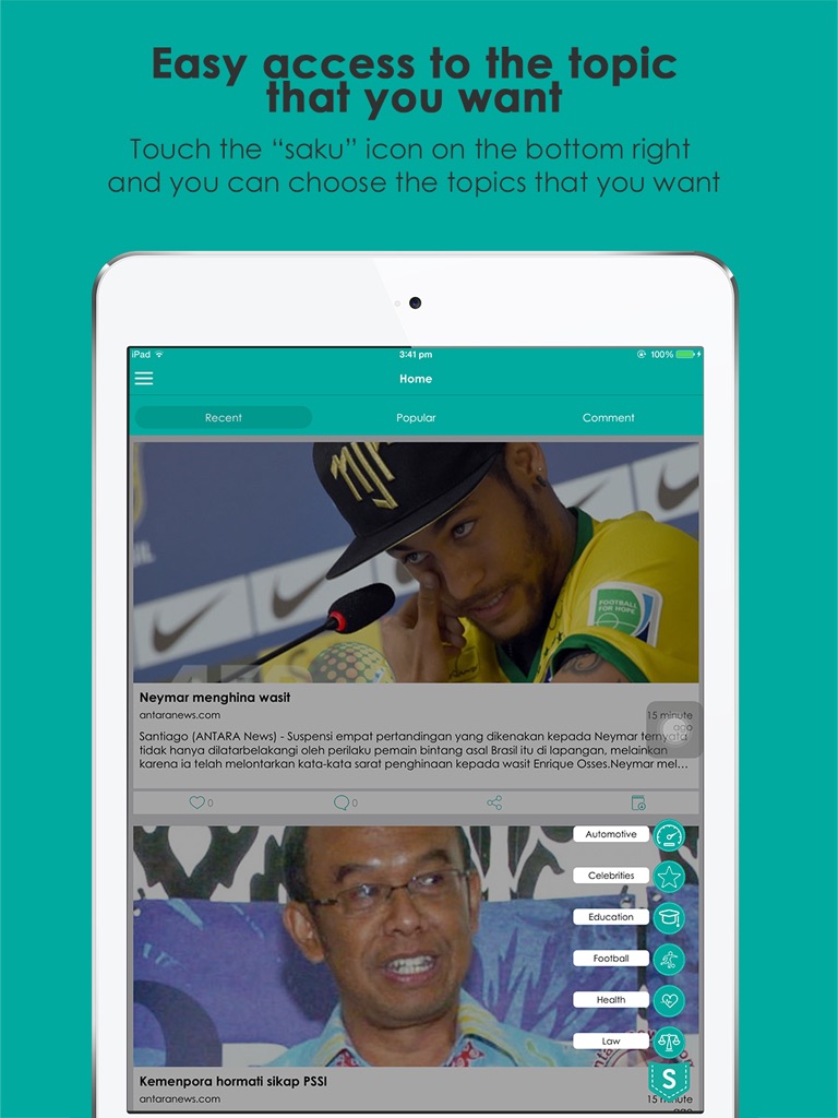 - membaca berita sesuai keinginan Anda langsung di halaman depan aplikasi