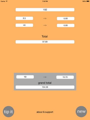 *click the tip it button to calculate tip to (click again for no tips)