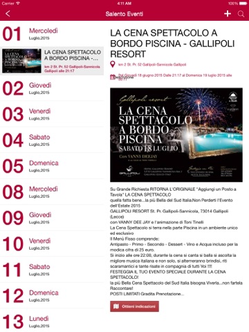 Un sezione interamente dedicata agli eventi con un calendario, discoteche, aperitivi e feste in spiaggia.