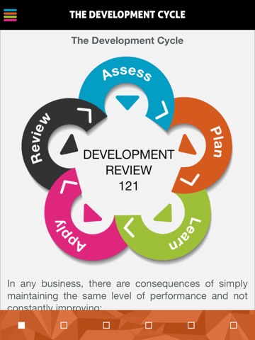 - Consistently using the development cycle to ensure all team members are developing themselves to higher levels ensuring a continuous upward spiral of development