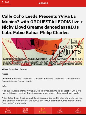 3) How To - Learn new moves via video demonstrations and find out more about salsa classes, regularly updated with different salsa companies.