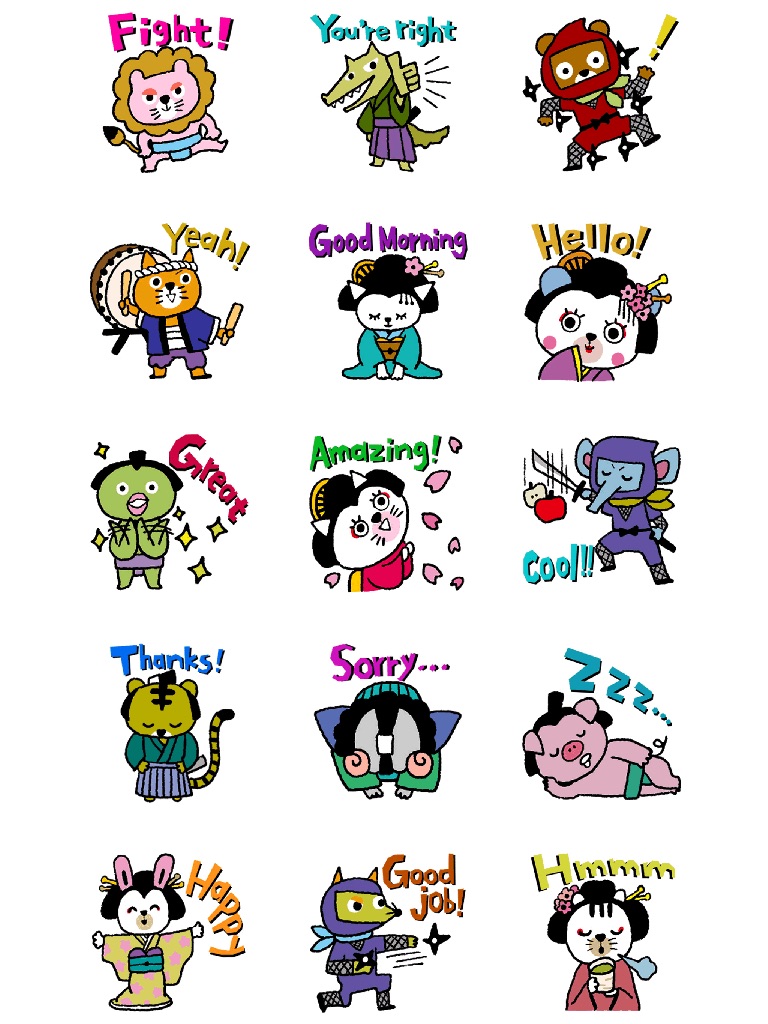 Japanese symbol that a Kimono, Kabuki, a Ninja, a Samurai, and the Sumo come up with a sticker!