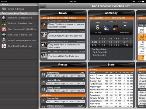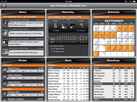 Everything Giants you need to know. This app has every worthy article of pre & post games from the top news feeds as well as standings of other divisions. I dont like sifting for Giants news all over the web so to have it consolidated in one place is pretty sweet. Thank you!!