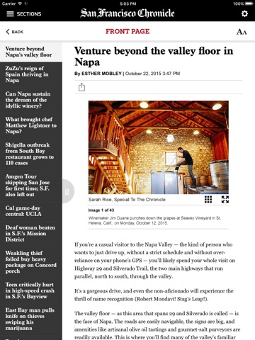 What a horrible app! Compared to the New York Times, this is awfully slow to download, horrible to navigate, and frankly it is so bad, it makes trying to read the Chronicle such a terrible experience, its not worth trying. Chronicle people, try some other newspaper apps and learn how to develop an app that works.