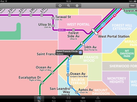 ● TRAVEL EXPLORER ● The unique travel explorer feature provides a view of travel times using transport or on foot and distances in miles or kilometres from any location on the map. This is helpful for getting a sense of scale and connectivity of the transport system and can provide some interesting results. For example is it quicker to use the Muni to go from Traval St & Sunset Blvd to Deboce Ave & Church St or is it quicker on foot? (Hint, the quickest route will keep you fitter). No other application makes it so easy to get around and allow you to make travel decisions based on actual distances and estimated travel times on foot.