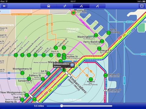 ● OVERVIEW ● The San Francisco Metro - Map and route planner by Zuti makes it easy to travel in and around San Francisco using the BART, Muni Metro, Cable Car and Historic Streetcar services. Also included are the AirBart shuttle bus, AC Transit Bus, Ferry services, PresidiGo Around the Park shuttle and Downtown bus services. The application contains a professionally drawn map and route planner with many unique features. The map provides a simple and colourful view of the city transport services with the ability to switch to an online street map view when an internet connection is available. This provides the best of both worlds, the transport map and route planning anytime, anywhere and online street maps and search when an internet connection is available.