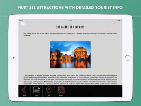 The "San Francisco Travel Guide" app goes beyond the city limits, offering touristic information for places around the main city, including the wine country of Napa Valley, the tech hub of Silicon Valley, and the scenic coastal town of Sausalito. With safety suggestions, a customizable travel itinerary, and insights into San Franciscos rich history and culture, planning your trip is as breezy as the citys famous fog.