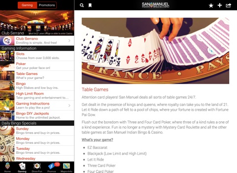 Feel the thrill of San Manuel Casino. Find table games, slot tournaments, or some high-stakes poker. Get information onLearn about our loyalty program and sign up - right from the app!
