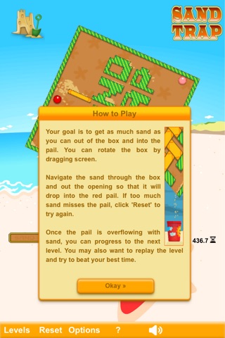 Once the pail is overflowing with sand, you can progress to the next level. You may also want to replay the level and try to beat your best time.