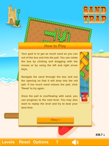 Sand Trap Solo is an exciting game to get the sand out of maze and fill up the bucket. If more than required sand fall out on the ground youll have to play the stage again.