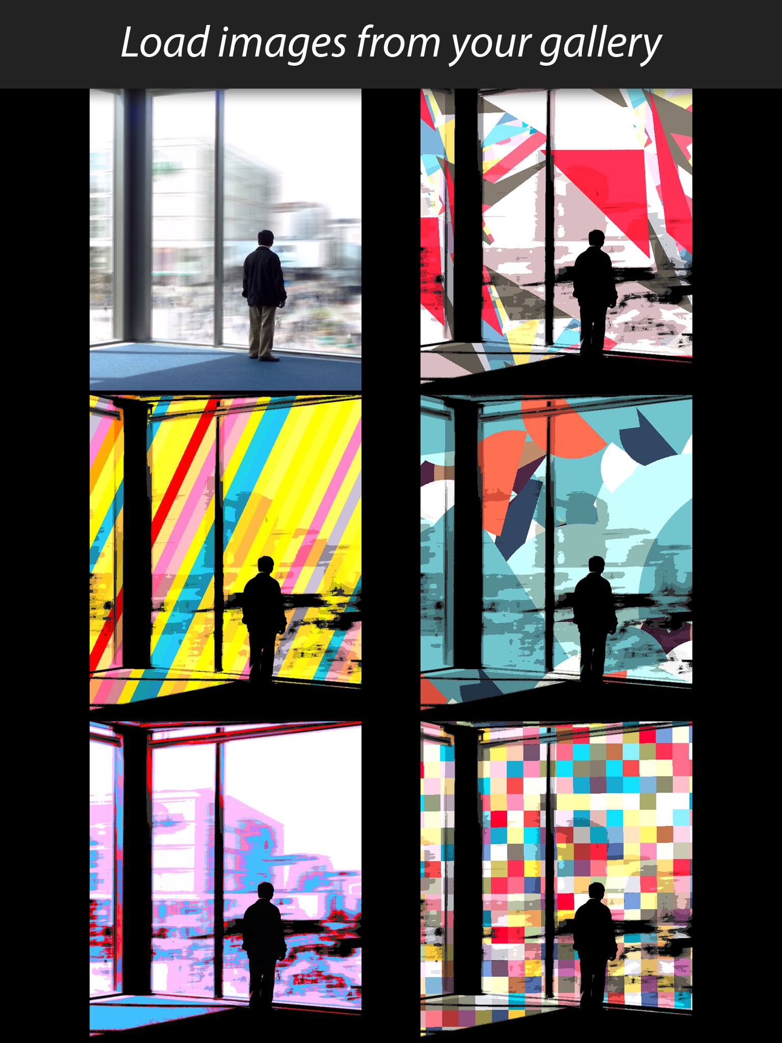 - Load images from your iPhone Gallery and combine them with colors
