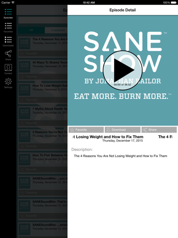 Stop counting and start living! Your SANE Show App gives you exclusive access to all of New York Times bestselling author Jonthan Bailors wellness radio shows and bonus episodes in one convenient spot - including premium bonus content you wont get anywhere else except inside this app! Syndicated internationally, listened to over 4.5 million times in its first 18 months, and supported by HarperCollins, Rodale, and RadioIO, you will be joining millions in taking your SANEity back!